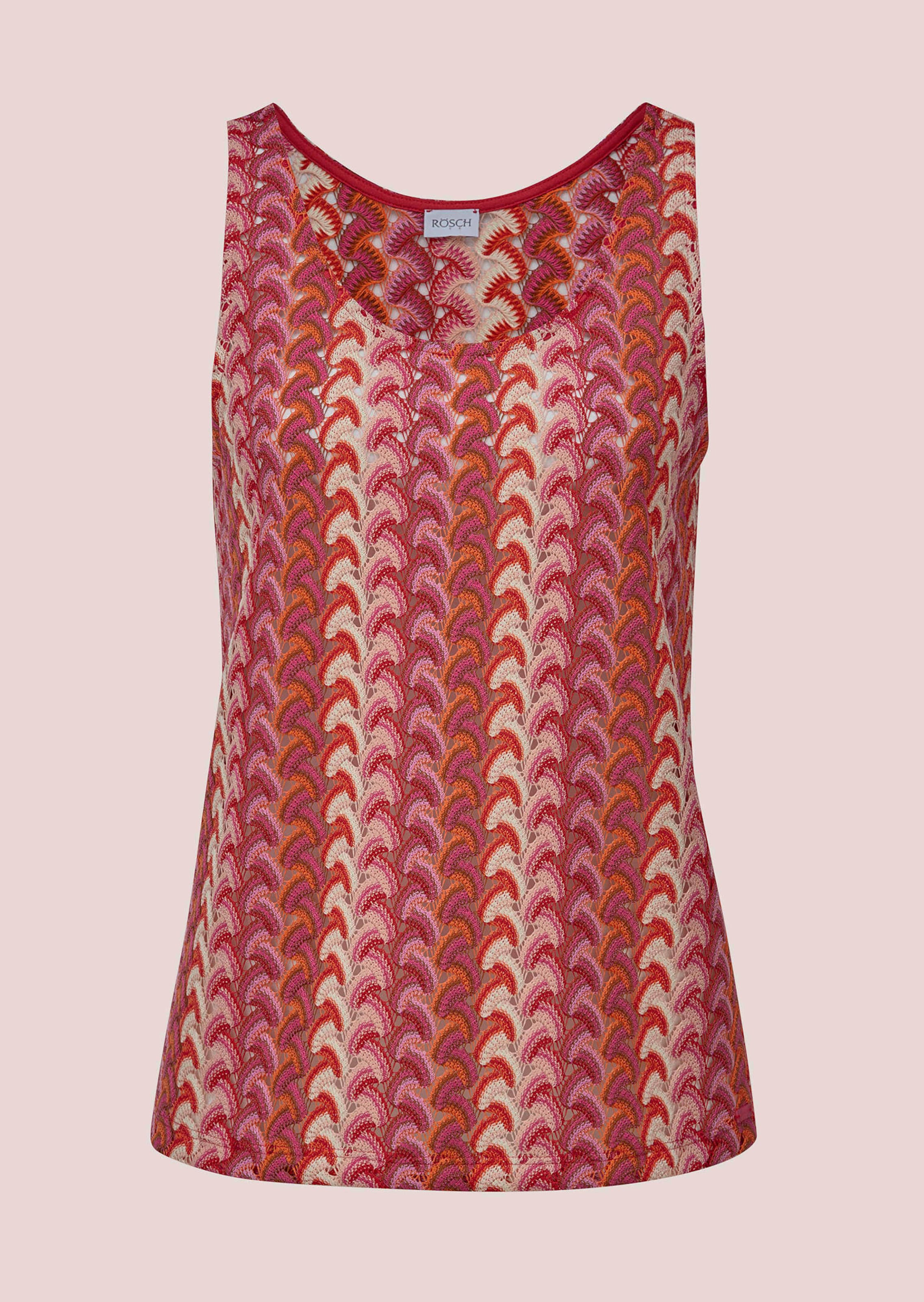 Sleeveless top by RÖSCH – an airy, lightweight summer piece with a chic crochet lace look. The easy-care knit fabric feels soft against the skin. Very comfortable to wear thanks to the figure-hugging, straight cut. The round neckline and armholes are trimmed with elasticated piping that defines the style.