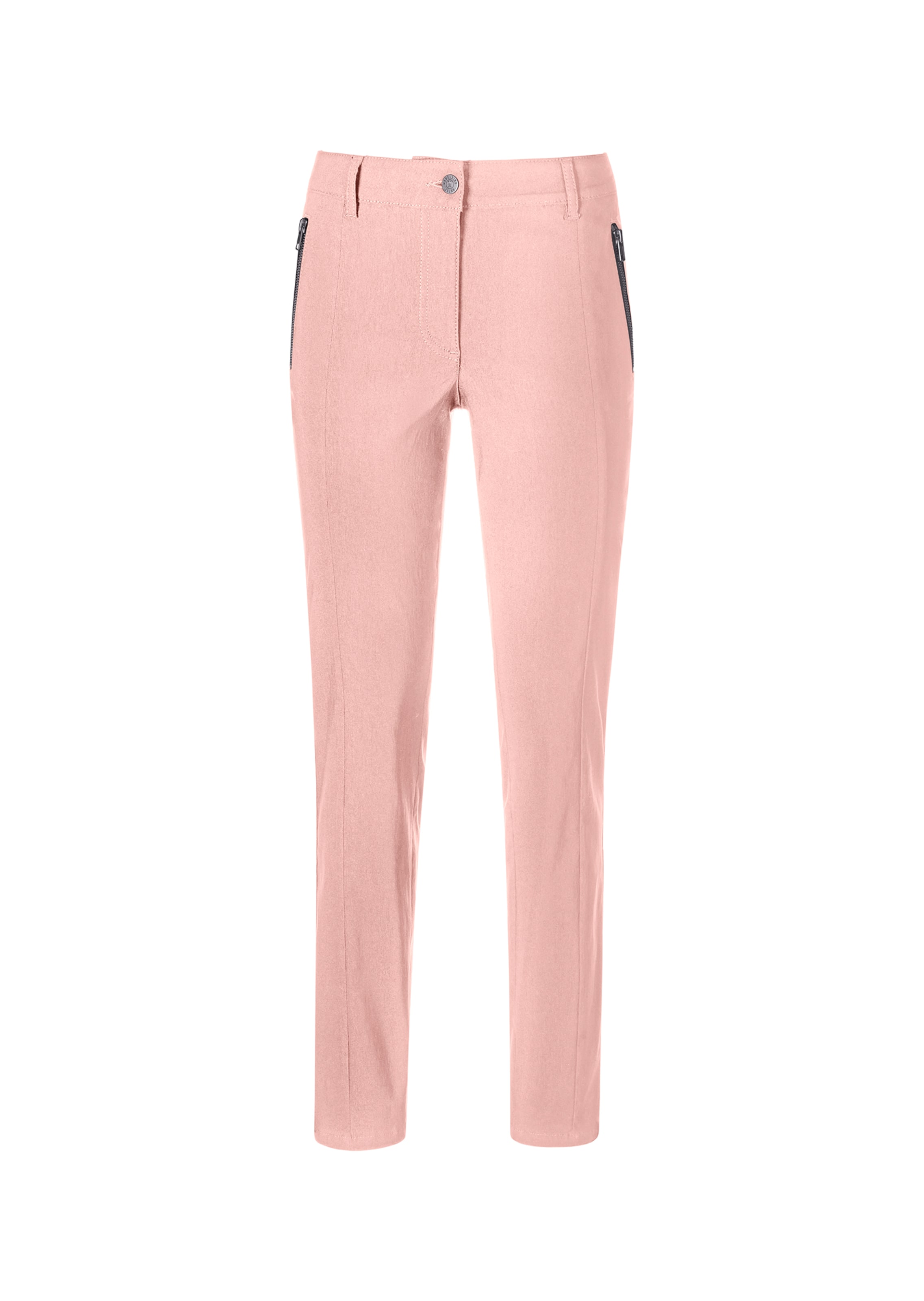 Slim shape in skinny fit with contour waistband with belt loops, hem loops, zipped pockets and patch back pockets.