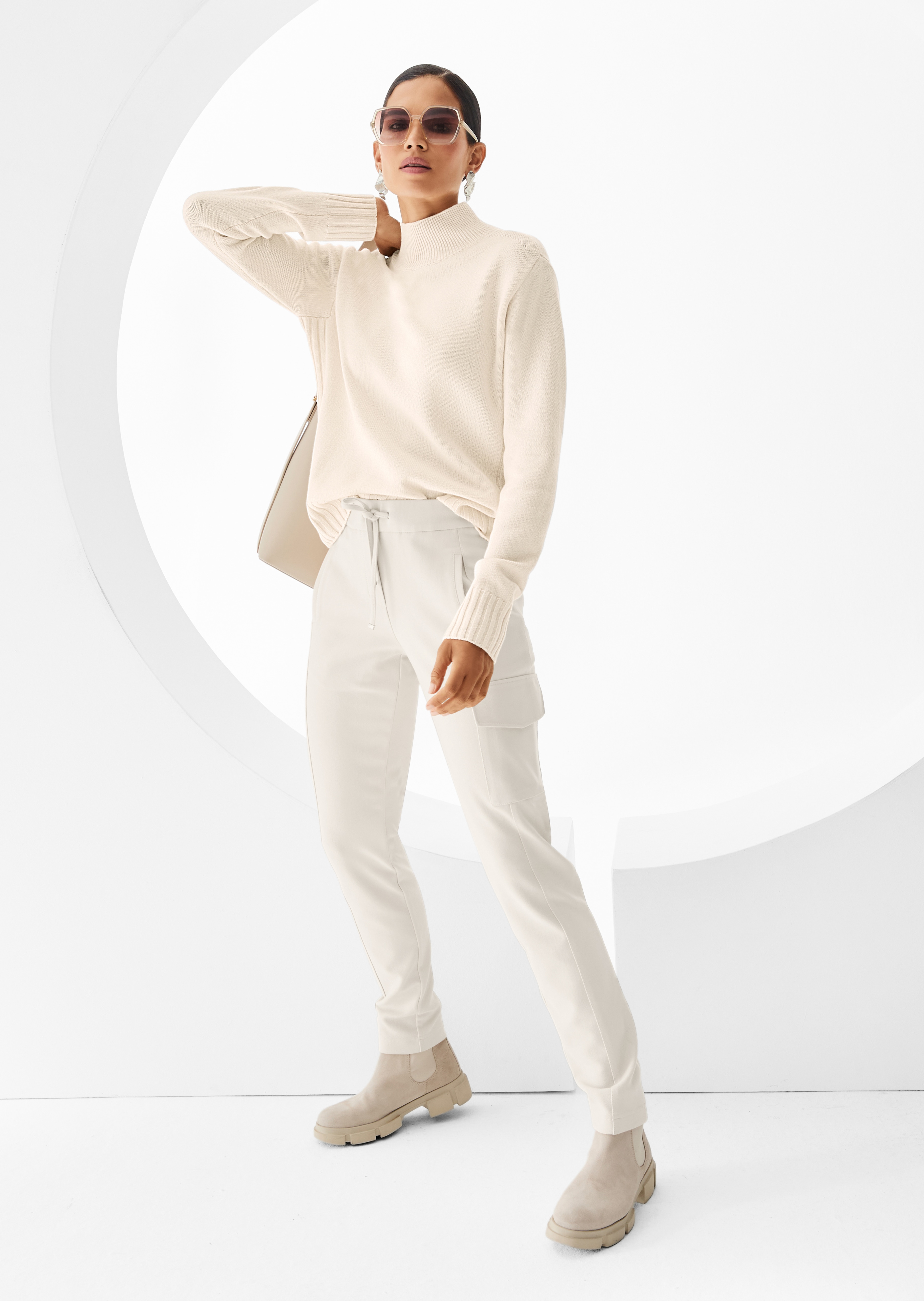 A chic and versatile all-rounder that combines elegance with lasting comfort. These slim trousers are made from highly elastic fabric that feels soft against the skin, stays in shape and is wonderfully easy to wear. The sleek, pocketless design creates a smooth silhouette, while cleverly placed front seams add a flattering, elongating effect. The waistband-free style gently hugs the hips for a perfect fit.