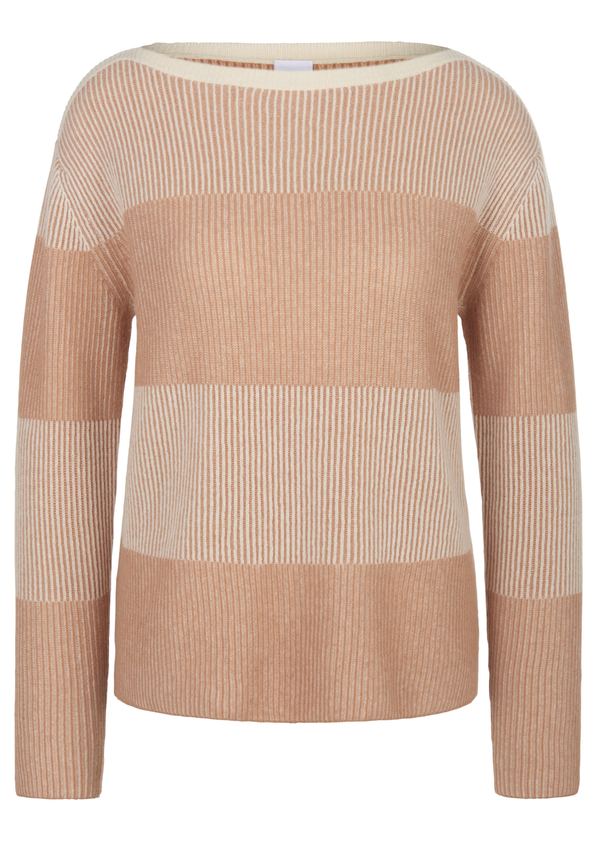 Full cardigan knit with two-tone effect. Comfort-fit with boat neckline, long sleeves and dropped shoulders.