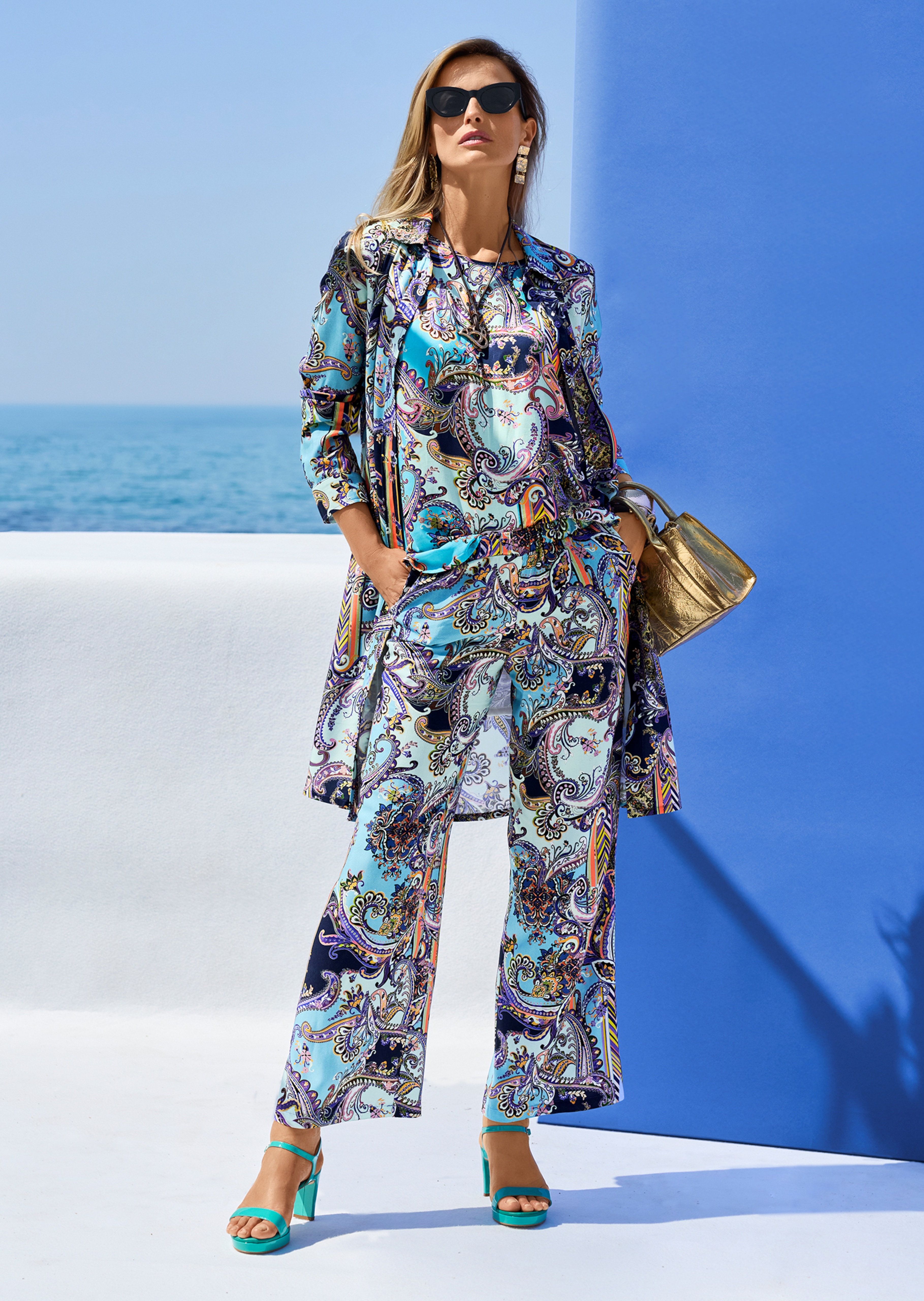 Softly flowing viscose, with a beautiful paisley print all over, each piece is a one-off! Wide, casual shape with a comfortable slip-on waistband and pockets at the side slits.